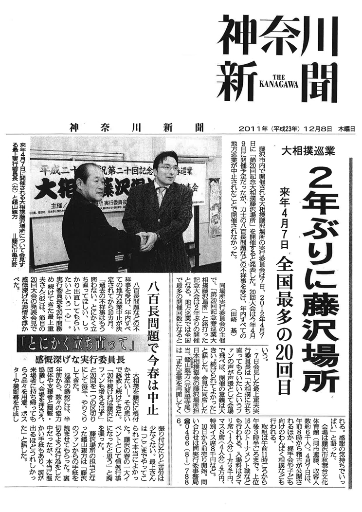 Bookmark the permalink.大相撲巡業 2年ぶりに藤沢場所 来年4月7日 全国最多の20回目