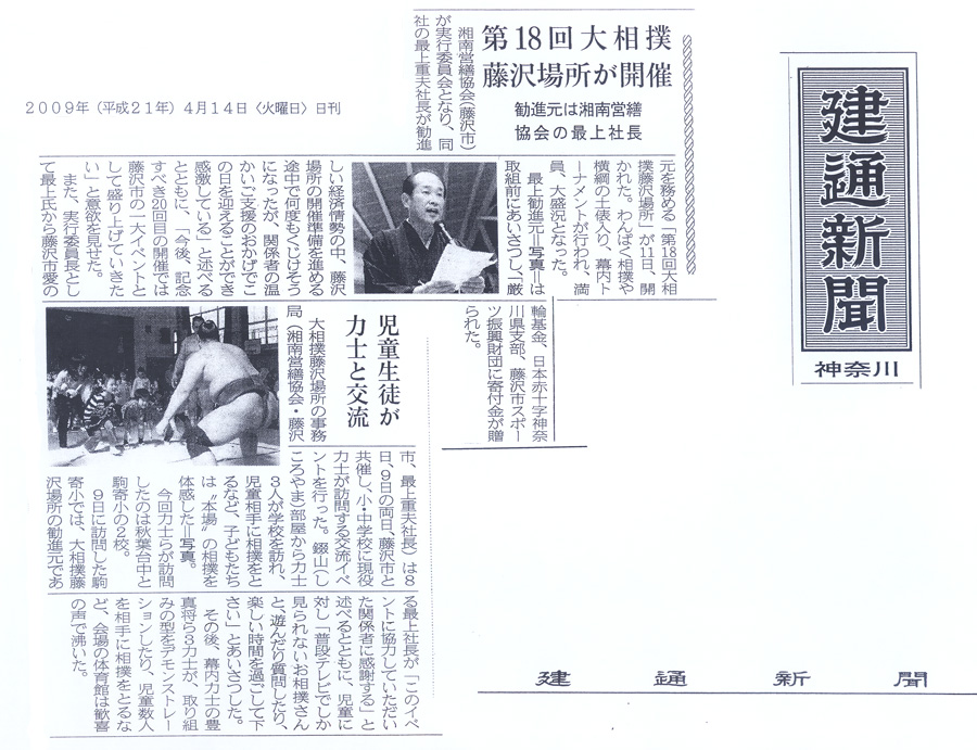 建通新聞「第18回大相撲藤沢場所が開催/児童生徒が力士と交流」