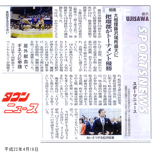「大相撲藤沢場所盛大に把瑠都がトーナメント優勝」