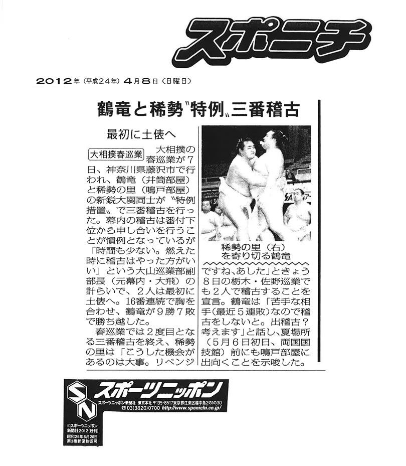 「鶴竜と稀勢“特例”三番稽古