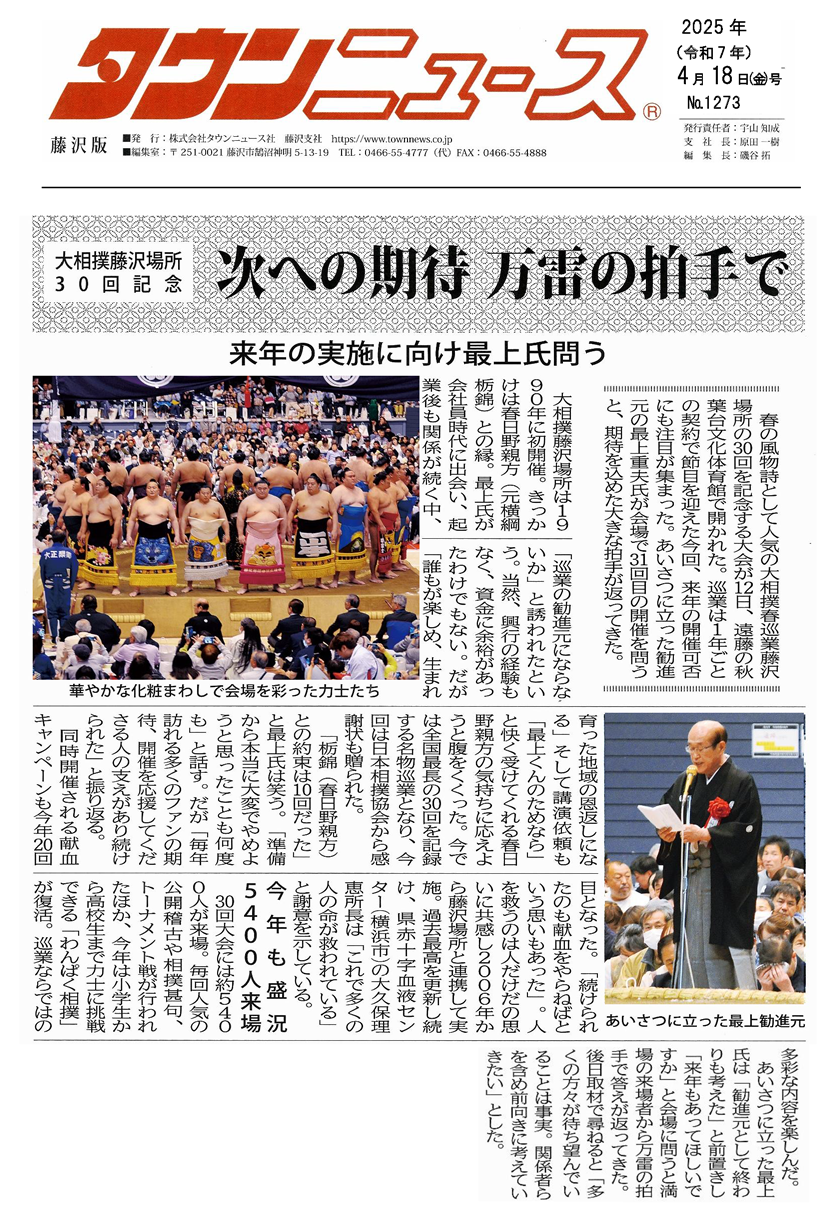 - 大相撲藤沢場所30回記念 次への期待 万雷の拍手で